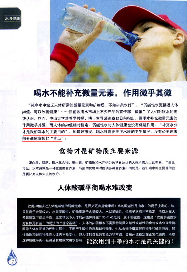 剪报图片:喝水不能补充微量元素 作用微乎其微