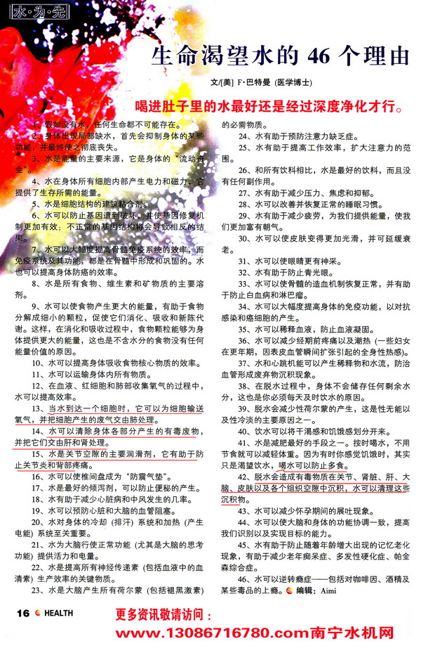 剪报图片:水为先 生命渴望水的46个理由