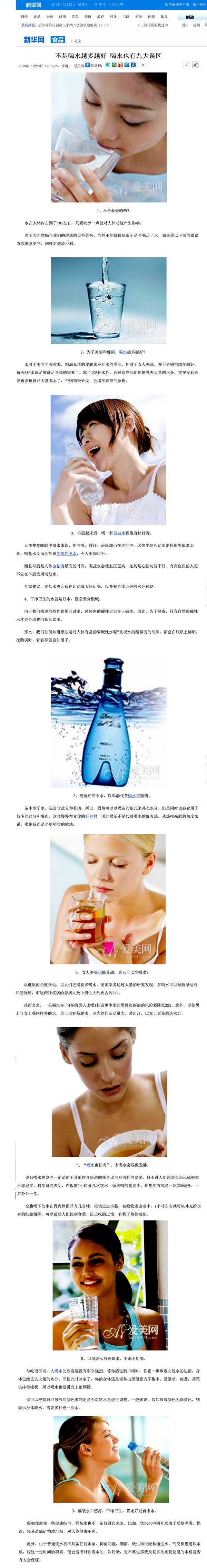 剪报图片:新华网 不是喝水越多越好 喝水也有九大误区