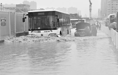 昨日早高峰,武汉市迎头遇上一场大到暴雨,汉阳王家湾、武昌雄楚大道、长江隧道的友谊大道出口等地,均出现不同程度的渍水,造成部分路段交通拥堵。记者实地探访发现,较严重的渍水点周边均有在建工地或工程施工,排水设施遭到严重破坏,排水通道被堵,形成渍水。