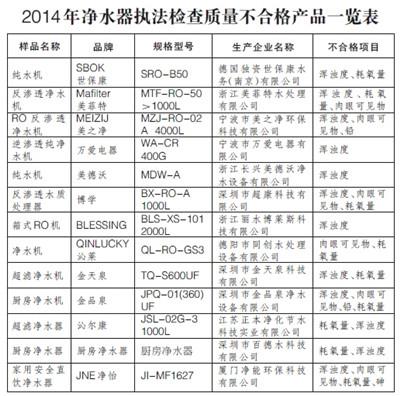 13家净水器企业上国家质检总局质量黑榜